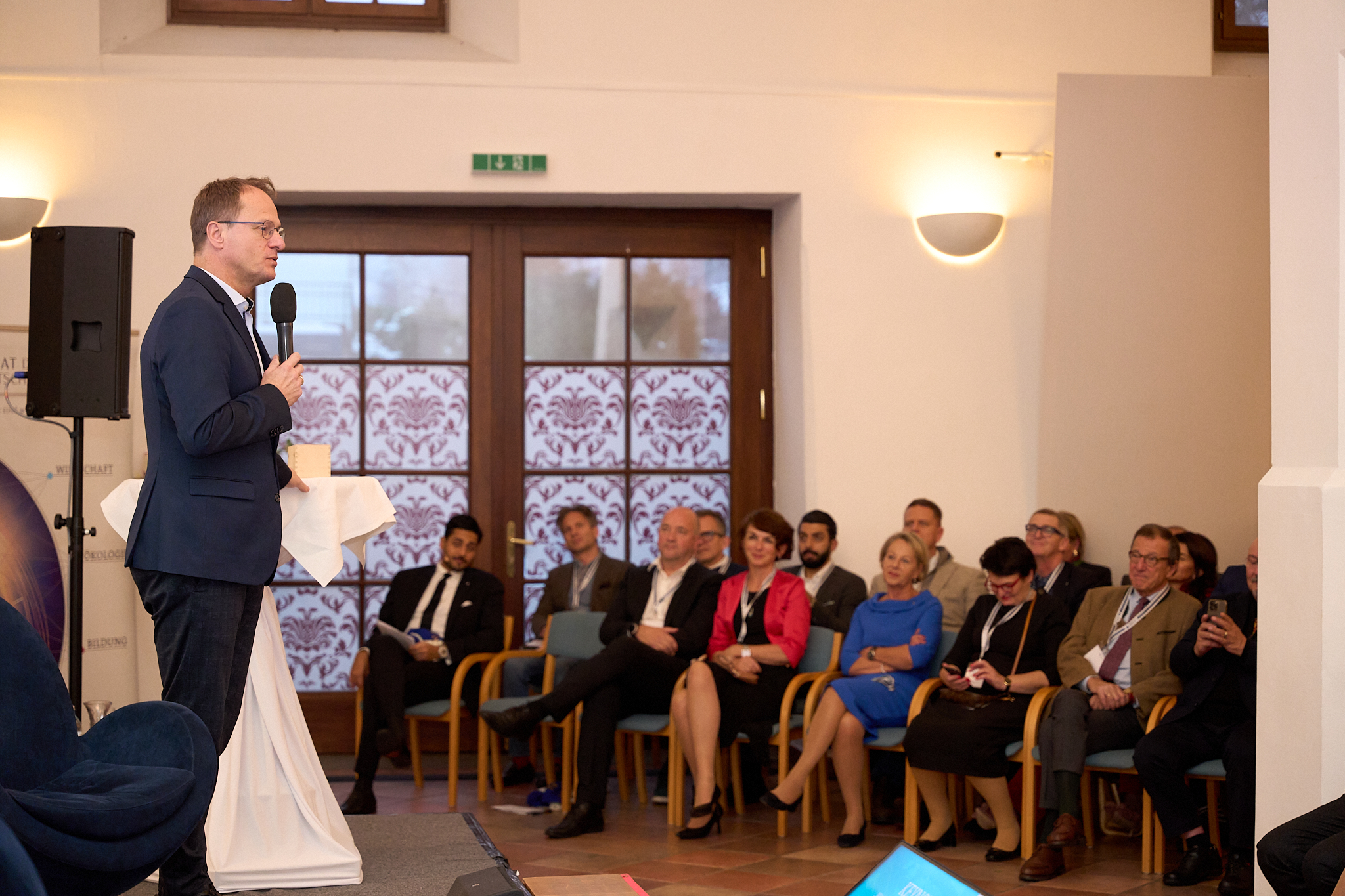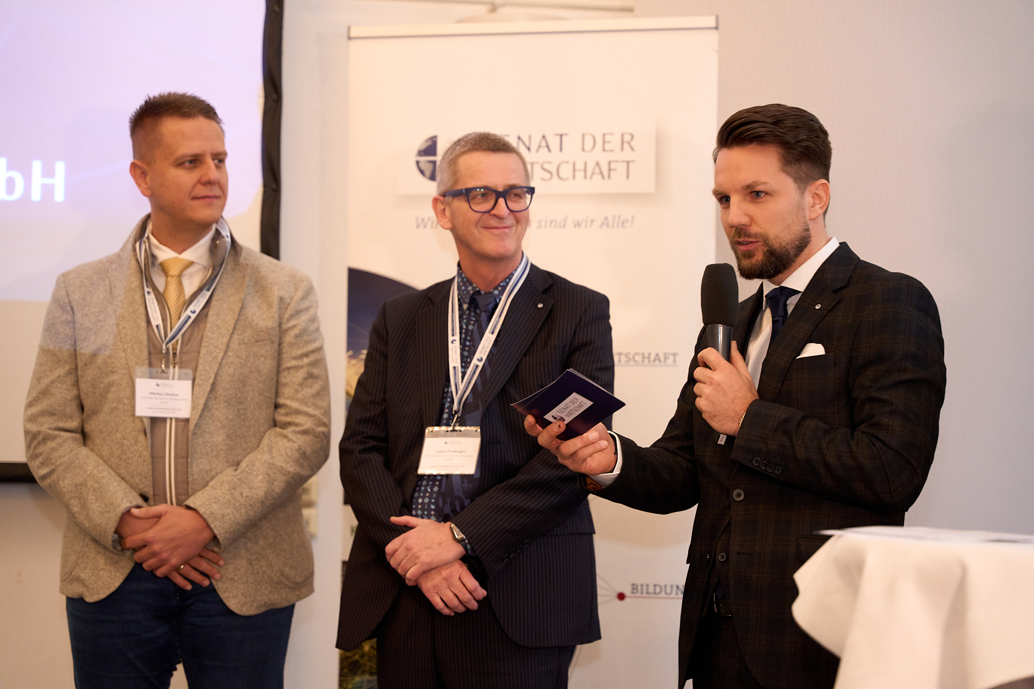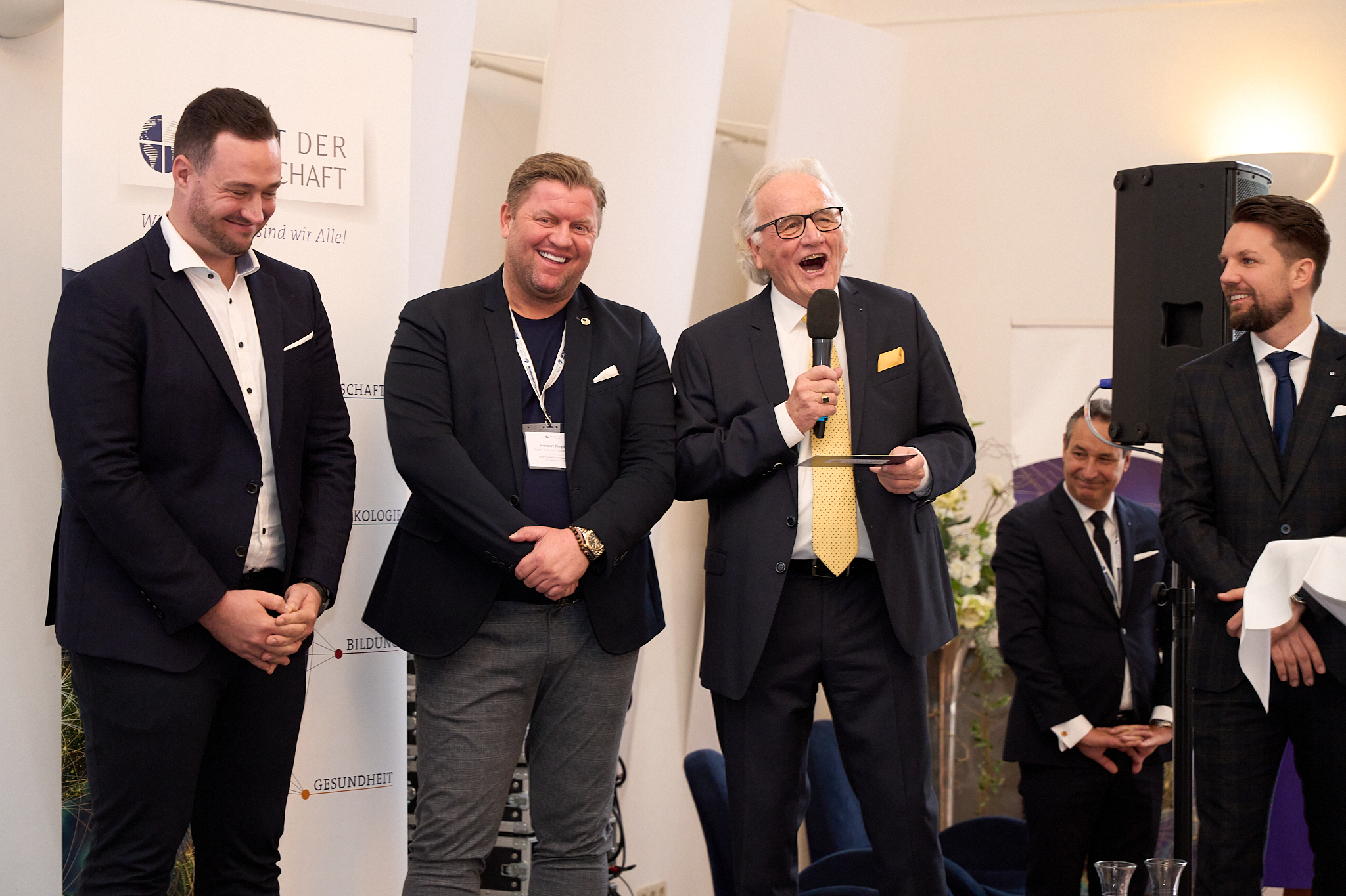 Der Höhepunkt des Abends: Die pointierte und spannende Keynote von Univ. Univ. Prof. Mag. Dr. Markus Hengstschläger zur Lösungsbegabung. Inmitten von Wandel, digitaler Revolution, Klimakrise und Pandemien rief er dazu auf, sich auf dieser menschlichen Grundvoraussetzung zu besinnen: Jeder kann aus Herausforderungen Lösungen gestalten, und wir sind nicht auf unsere Gene reduzierbar. Die zielorientierte Verfolgung sicherer und ungerichteter flexibler Strategien schafft Mut, alte Wege zu verlassen und die Innovationskraft zu steigern. Hengstschläger ermutigte dazu, diese Prinzipien auf Bildung, Talentmanagement, Forschung, Politik und die Arbeitswelt anzuwenden, um gemeinsam die Geschichte der Gegenwart neu zu schreiben. Er warnte vor blauäugigem Optimismus, rief aber dennoch auf, der Mitmachkrise zu trotzen – durch mutige, kreative und kooperative Anteilnahme in unsere Welt.
