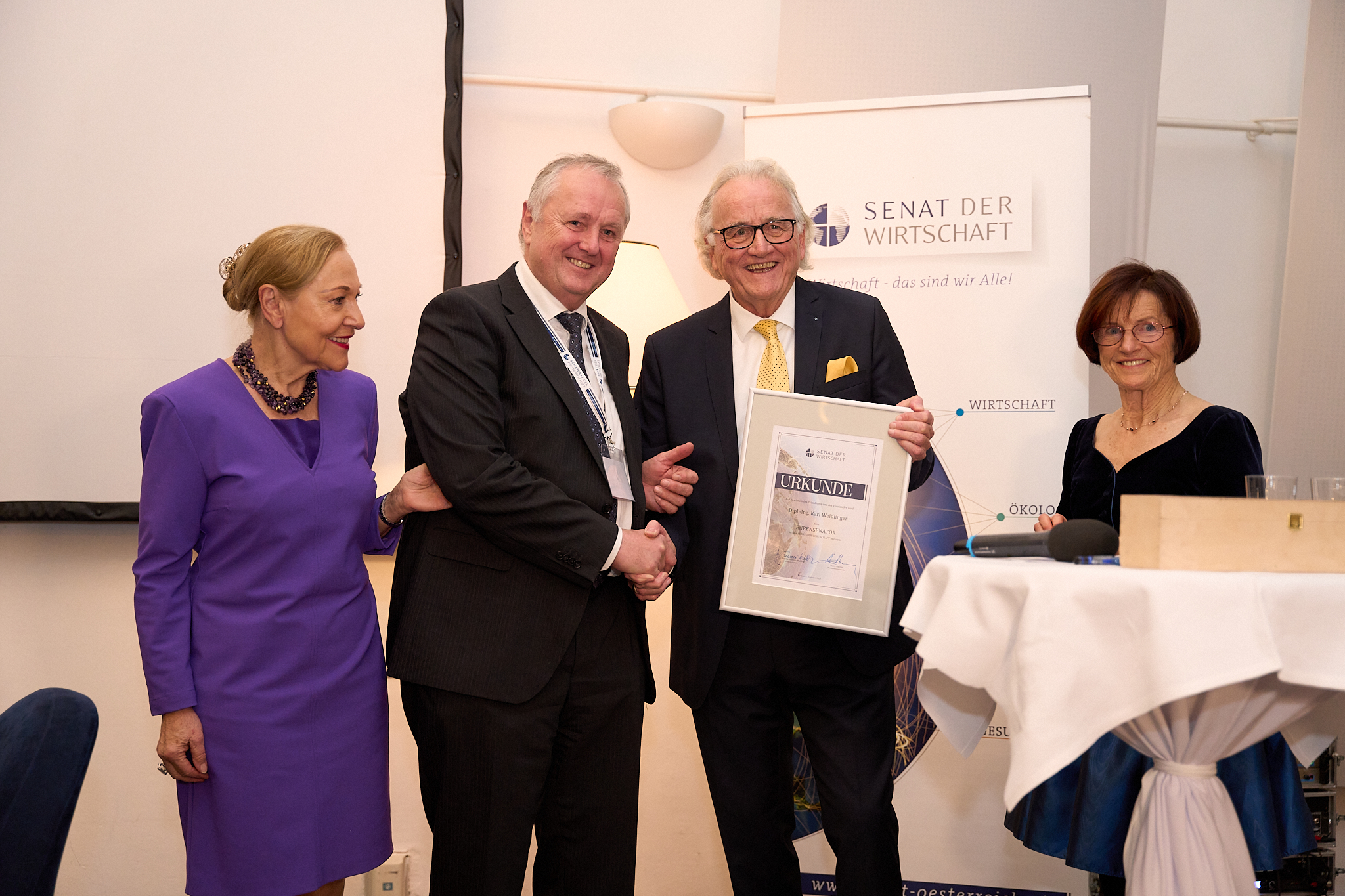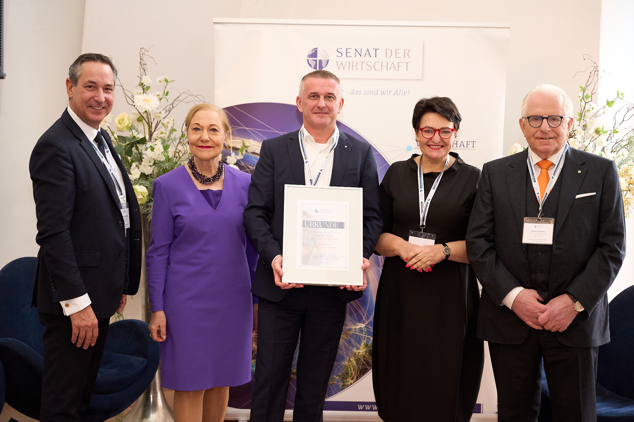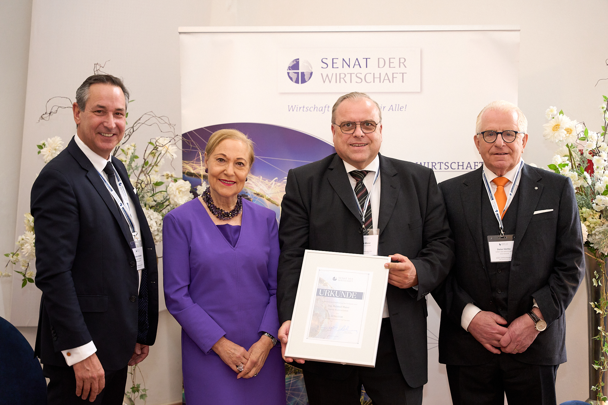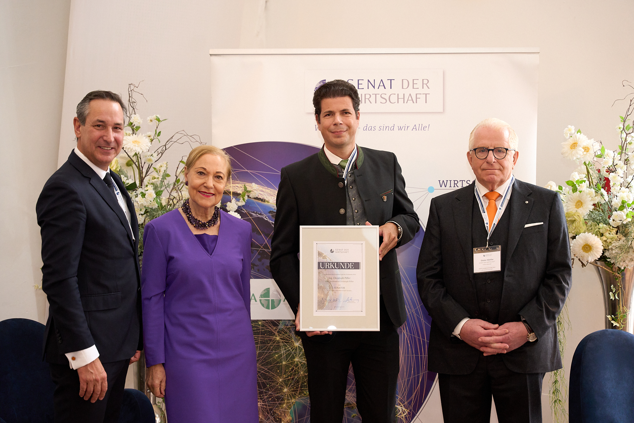 Als Zeichen dieser gelebten SENATs-Familie wurden Senatorinnen und Senatoren im Laufe des weiteren Abend für ihre tatkräftige Mitarbeiter und ihre langjährige Treue über 10 Jahre mit der goldenen Senats-Ehrennadel ausgezeichnet werden. Beim festlichen Gala-Dinner wurde Gabriele Stowasser die „Donaublume“, eine Anerkennung der Donauinitiative Serbiens, für ihr Engagement im Westbalkan von den serbischen Gästen überreicht. Wir gratulieren herzlich an dieser Stelle noch einmal.