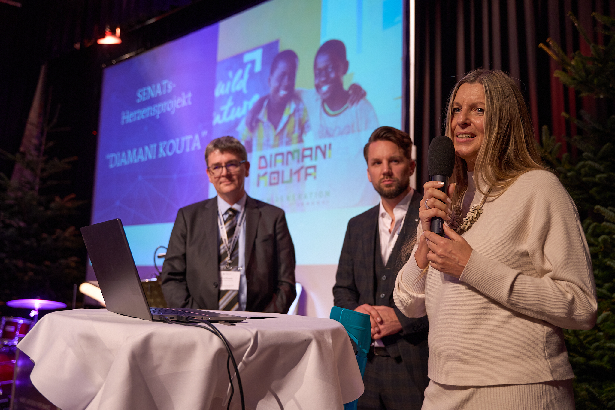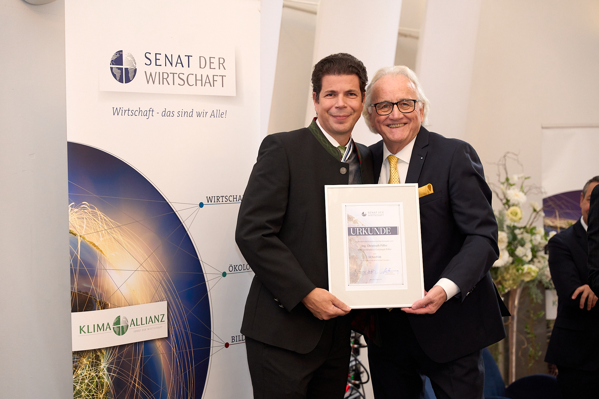 Gabriele Stowasser, Vorstandsmitglied im SENAT DER WIRTSCHAFT, eröffnete mit einer berührende Rede den Abend. Pfarrer Mag. Reinhard Bell aus der Pfarre St. Michael sorgte nicht nur für spirituelle Momente, sondern verlieh der Veranstaltung eine besondere Note, indem er die Senatorinnen und Senatoren mit seiner Ziehharmonika in Stimmung brachte. Bei dieser Gelegenheit wurde das Projekt „Kinder haben Zukunft” von Alfred Pozzetti geehrt. Senatorinnen und Senatoren unterstützten dieses großartige Kinderprojekt sowie das SENATs-Herzensprojekt „Diamani Kouta” mit insgesamt 15.000 Euro.
